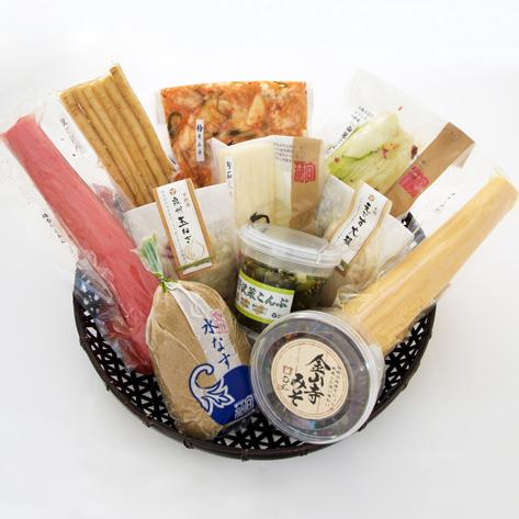 | コメント | 泉州特産水なすと旬茄の中でも特に人気の高いお漬物を詰め合わせました。 味のバリエーションは勿論お日持ちも5日〜3ヶ月とバランス良く揃えております。 内容量 水なすぬか漬・白菜こんぶ・干したくあんしそ・梅香たくあん・泉州玉ねぎ・極キムチ・旬茄大根(小)・里ごぼう・野沢菜こんぶ・金山寺味噌200g・えびす大根 |