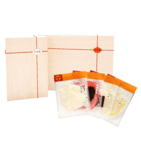 | コメント | 寒月仕込千枚漬6袋詰め合わせ 内容量:千枚漬×2袋・紅千枚×2袋・雪見千枚×1袋・ゆず千枚×1袋 計6袋 税込価格3,240円+送料一律550円のお徳なセットです!!(システムの表記上商品価格3,790円【送料込】と表示されております) 滋賀県大中産聖護院かぶらにこだわり職人の技で削りだした旬茄の冬の名物です。 |